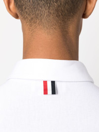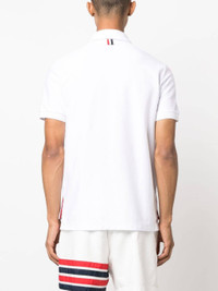 RWB stripe polo shirt from THOM BROWNE featuring white, red, navy blue, cotton, jersey knit, grosgrain ribbon trim, RWB stripe, signature grosgrain side tabs, club collar, short front button fastening, short sleeves and straight hem. Size & Fit Model Measurements: Height: 1.86 m Bust/Chest: 91.0 cm Hips: 93.0 cm Waist: 72.0 cm Model wears size 1 Fabric and Care Designer Style ID: MJP196AJ0138 Designer Colour: 100 WHITE Composition: Cotton 100% Washing instructions: Dry Clean Only Made in Italy