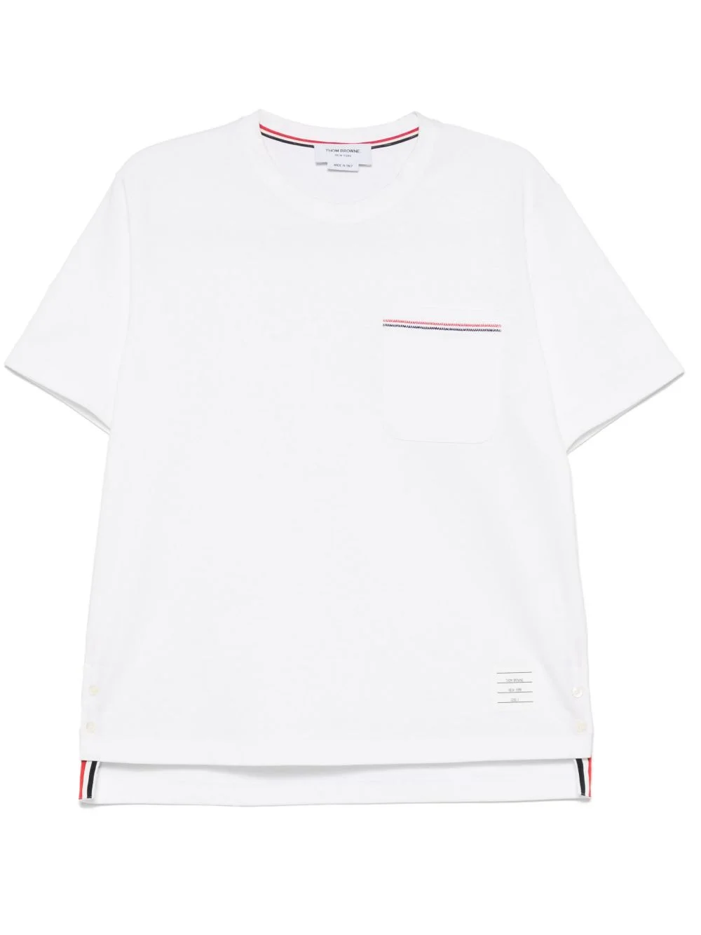 RWB-stripe jersey T-shirt Highlights - White - Crew neck - Chest patch pocket - Short sleeves Made in Italy Composition Cotton 100% SIZE & FIT Model measurements Height 6 ft 2 in(1.87 m) Bust/Chest 38.18 in(97 cm) Hips 36.61 in(93 cm) Waist 29.13 in(74 cm) FittingInformation Designed for a relaxed fit, this piece allows for comfort and movement when worn Made from a midweight non-stretch fabric, this piece offers minimal elasticity when worn Washing instructions Dry Clean Only