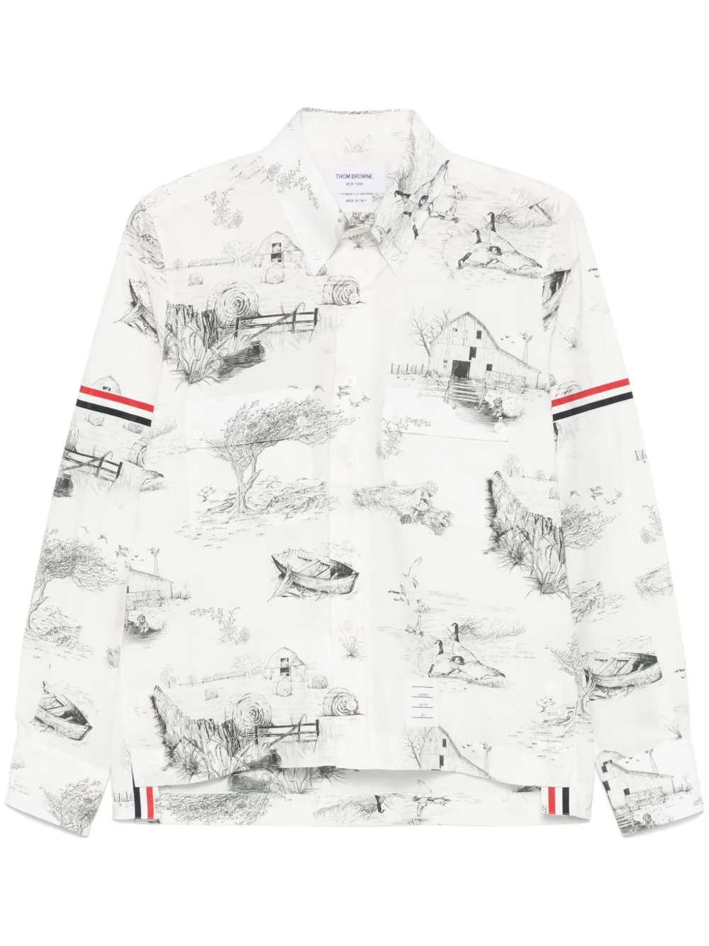 Scenic Toile-print cotton shirt Highlights - White - Front button fastening - Two chest flap pockets - Buttoned cuffs - Button-down collar Made in Italy Composition Cotton 100% SIZE & FIT Model measurements Height 6 ft 2 in(1.87 m) Bust/Chest 37.79 in(96 cm) Hips 37.79 in(96 cm) Waist 30.31 in(77 cm) FittingInformation Designed for a regular fit, allowing for a comfortably loose fit throughout the body Made from a midweight non-stretch fabric Washing instructions Dry Clean Only