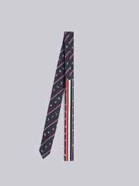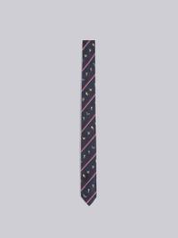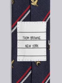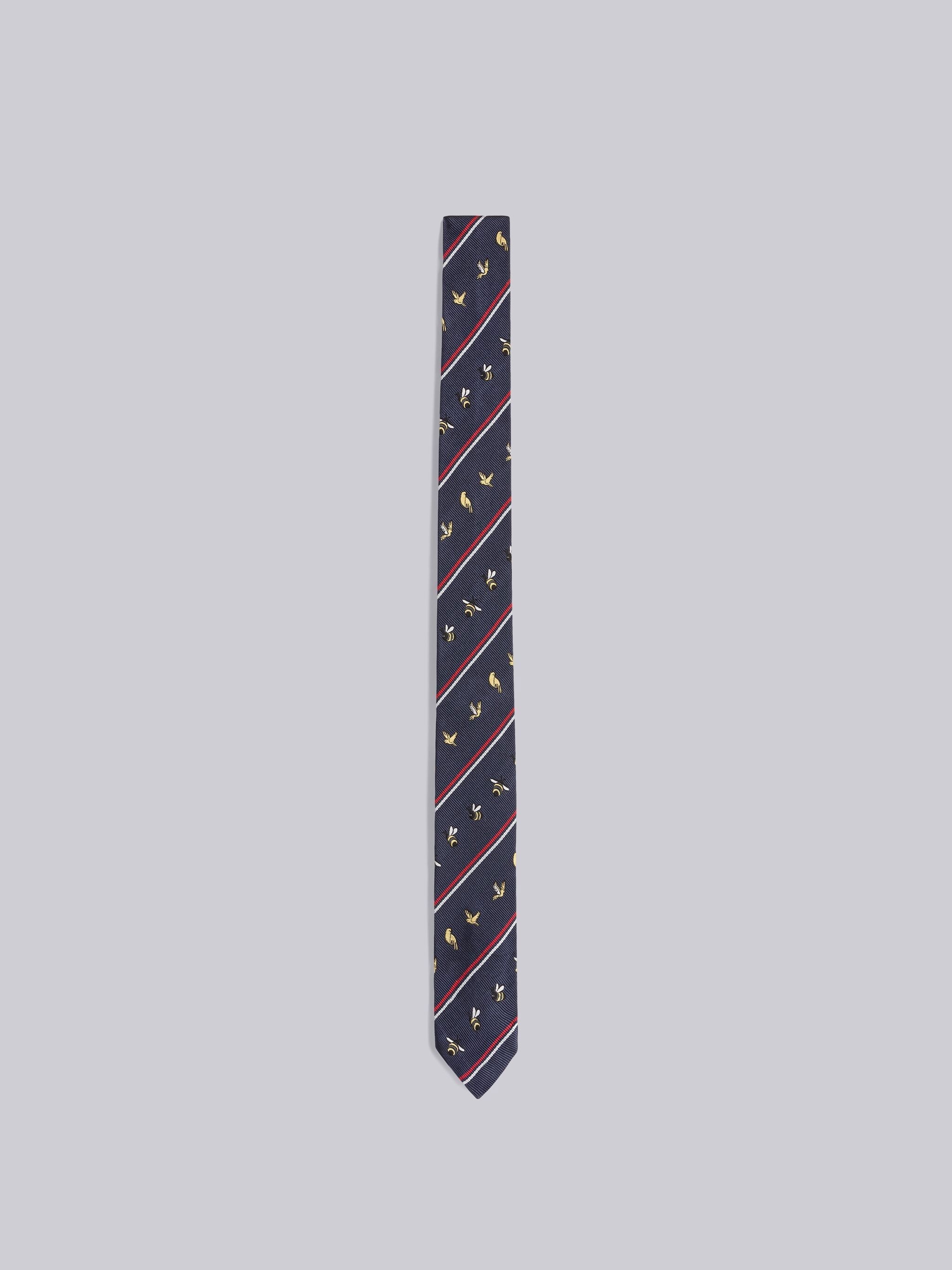 DETAILS & FIT Classic necktie in navy tie jacquard with diagonal stripe and bird and bee details throughout. Name tag and striped grosgrain appliques at reverse. 100% Silk Made in Italy MNL001AF0236415