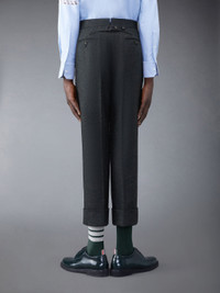 DETAILS & FIT Classic backstrap trouser in dark grey Shetland wool. Tab front closure, flat front, creased legs, wide cuffs. Slip side pockets, button-fastening back welt pockets. Signature striped grosgrain loop tab at back waist. Classic - Fit 1. Model is 6' 1"" (185cm), wearing size 0. 100% Wool Lining: 100% Cupro Made in Italy MTC001A-03793-350