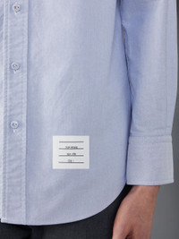 DETAILS & FIT A Thom Browne essential, our Oxford Armband Shirt exhibits quality craftsmanship and meticulous tailoring. Pair it with one of our signature trousers. Front button closure Patch chest pocket Name tag applique above hem Oxford armbands Pleated back yoke with locker loop Signature striped grosgrain loop tab Model is 6' 1" (185cm), wearing size 1 100% Cotton Made in Italy MWL403O-F0313-480