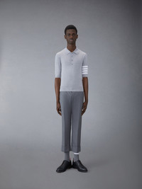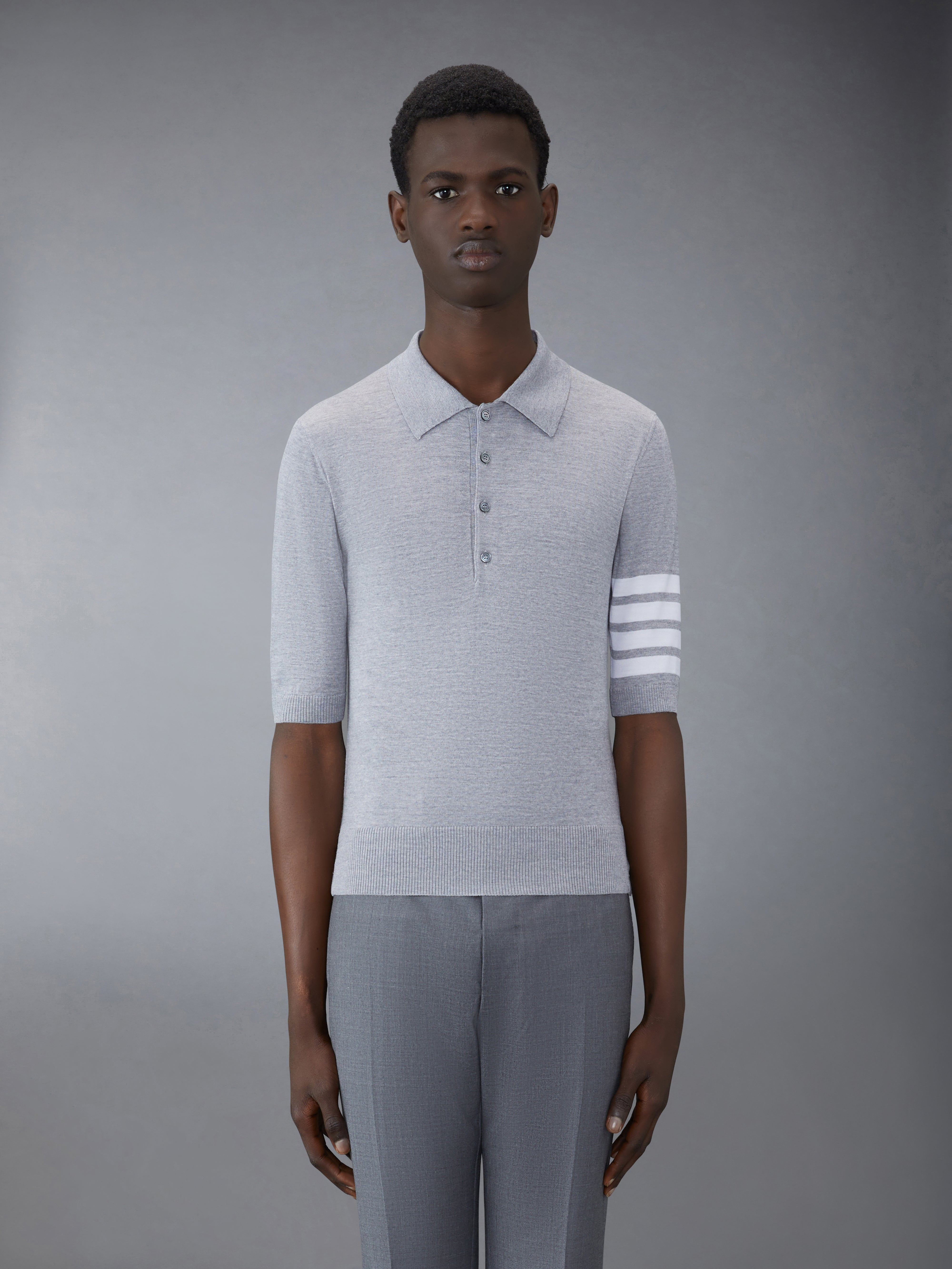 DETAILS & FIT Inspired by East Coast preppy icons but reimagined with inventive proportions and quality craftsmanship, our Wool Short Sleeve Polois a sophisticated take on a classic silhouette. Partial button placket Spread polo collar 4-bar detail at left sleeve Buttoned side vents with signature striped grosgrain trim Signature striped grosgrain loop tab at back of neck Model is 6' 1" (185cm), wearing size 0 100% Merino Wool Made in Italy MKP048A-Y1014-055