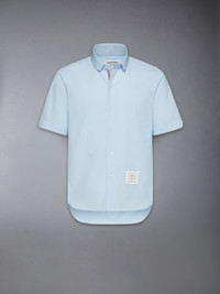 DETAILS & FIT A springtime essential, our Poplin Round Hem Shirt exhibits quality craftsmanship and meticulous tailoring. Front button closure Chest patch pocket Pleated back yoke with locker loop Nametag applique Signature striped grosgrain loop tab Model is 6'1" (185cm), wearing size 1 100% Cotton Made in Italy MWS322A-03113-480