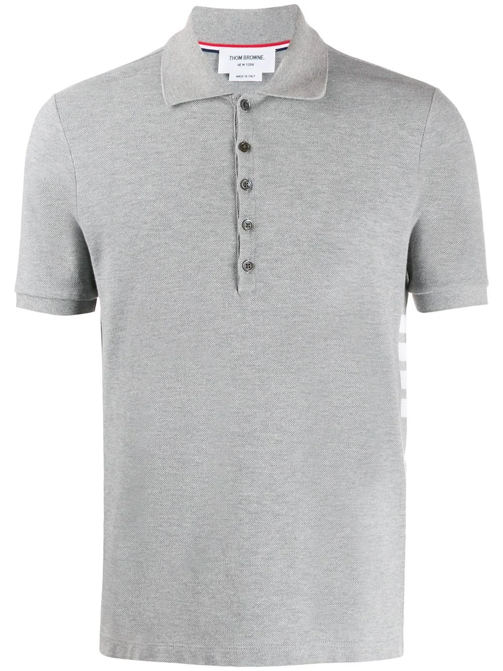 4-Bar pique polo shirt Update your casualwear with Thom Browne. Crafted in light grey cotton, this polo shirt from Thom Browne is detailed with a 4-Bar rib cuff and side white stripes. The key is in the detail. Featuring a classic polo collar, short sleeves, a front button placket and horizontal stripes. Made in Italy Composition Cotton 100% SIZE & FIT Model measurements Height 6 ft 2 in(1.87 m) Bust/Chest 38.18 in(97 cm) Hips 36.61 in(93 cm) Waist 29.13 in(74 cm) FittingInformation This piece fits true to size. We recommend you get your regular size Cut for a relaxed fit Made with a mid-weight fabric Washing instructions Dry Clean Only