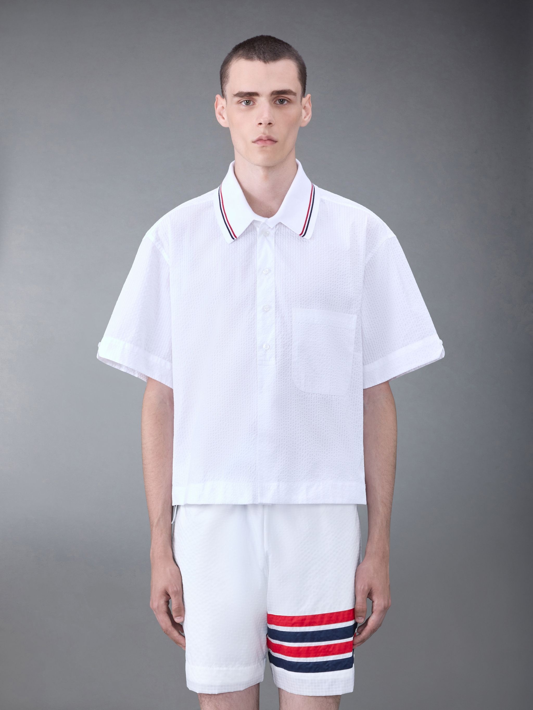 short-sleeve seersucker cotton shirt