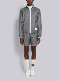 DETAILS & FIT Track shorts in silver quilted ripstop with jersey lining. Elasticated drawstring waist with striped aglets. Name tag applique above left cuff. Slant side pockets, single back welt pocket. Signature striped grosgrain loop tab at back waist. Model is 6' 1" (185mm), wearing size 0. 100% Nylon Made in Italy MJQ136A06859045