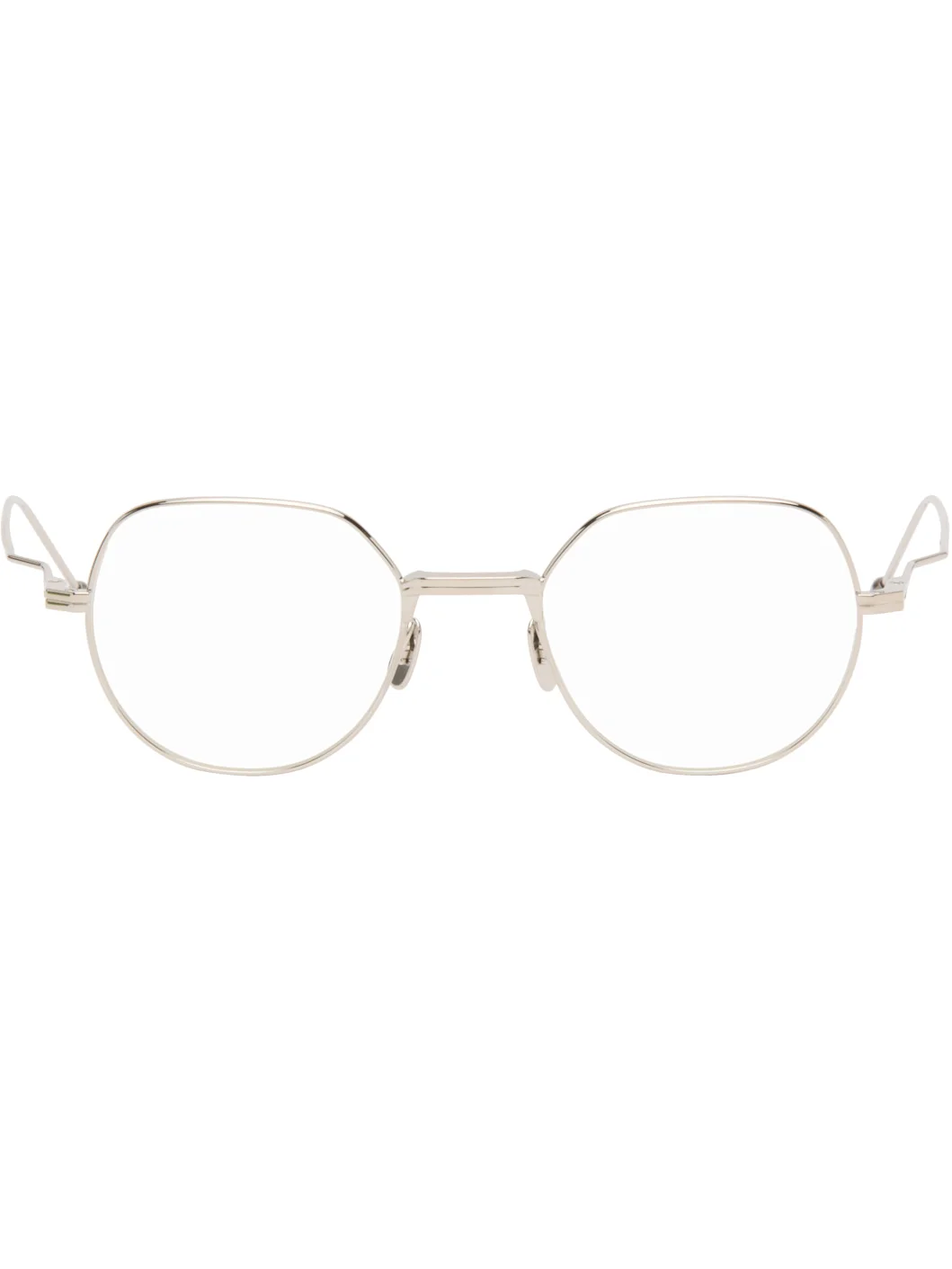 Round titanium-frame optical glasses. · Adjustable nose pads · Enameled tricolor stripes at temple tips · Includes case · Size: 48.20 120 Supplier color: Silver Titanium. Made in Japan 252381M133000