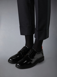 Crafted with the highest quality of classic shoemaking, these brogues are a staple in Thom Browne's legacy. Pair them with any of our seasonal spring trousers. Lace up closure Perforated broguing throughout Rubber sole Calf leather lining Signature striped grosgrain loop tabs Upper: 100% Calf Leather Sole: 100% Rubber Lining: 100% Calf Leather Made in Italy MFD205A-00003-001