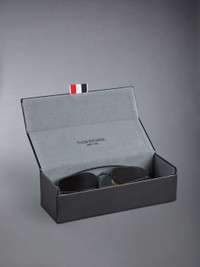 DETAILS & FIT Square aviator sunglasses in matte black and gold tone titanium with black tinted lenses. Textured matte black nose bridge, brushed gold tone titanium nose pads. Striped enamel temple tips. Leather case with signature striped grosgrain loop tab at entry. Lens Width: 50mm Nose Bridge Length: 22mm Temple Length: 150mm 100% Titanium Made in Japan UES907A-G0001-005-50