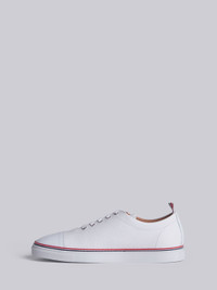 DETAILS & FIT White Trainers Pebble Grain Leather Upper Straight Calfskin Toe Cap Calfskin Lining Lace-Up Fastening Signature Grosgrain Loop Tab Tricolor Stripe Rubber Cupsole NOTES 80% Leather, 20% Rubber Made in Italy MFD067B00198100