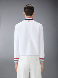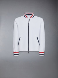 A breathable tennis jacket perfect for playing sports or running errands on activity-filled, humid spring days. Front zip closure Slip side pockets Signature striped grosgrain loop tab Model is 6'1" (185cm), wearing size 1 83% Viscose, 17% Polyester Made in Italy MKJ132A-Y5502-100