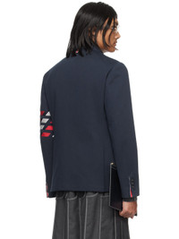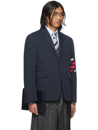 Cotton twill blazer. · Notched lapel · Button closure · Welt pocket at chest · Flap pockets · Stripes at sleeve · Four-button surgeon's cuffs · Tricolor grosgrain flag at back collar · Twin vents at back · Detachable suspender strap at interior · Full plain-woven cupro lining Supplier color: Red/Blue/White