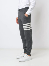 stripe detail sweatpants Grey stripe detail sweatpants from Thom Browne. Made in Italy Composition Outer: other fibers 100% SIZE & FIT Model measurements Height 6 ft 0 in(1.83 m) Bust/Chest 37.79 in(96 cm) Hips 37.79 in(96 cm) Waist 29.92 in(76 cm) Washing instructions Dry Clean Only