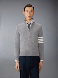 With bold 4-bar detailing at the left sleeve, this luxurious wool pullover pays homage to our sporty heritage. Designed with a partial zip for added breathability, it’s a versatile staple that effortlessly pairs with everything from tailored trousers to casual denim. Partial front zip closure 4-bar detailing Buttoned cuffs with signature striped grosgrain trim Signature striped grosgrain loop tab Model is 6'1" (185cm), wearing size 1 100% Virgin Wool Made in Italy MKA567A-Y1029-055