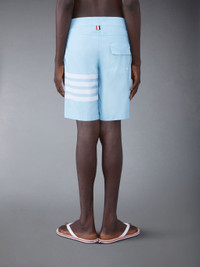 DETAILS & FIT Swimwear made artful. Our Swim Tech 4-Bar Board Shorts are equipped with sleek hip pockets and a drawstring waist. Drawstring waistband 4-bar detailing Slip Side pockets Back flap pocket Signature striped grosgrain loop tab at back waist Model is 6' 1" (185cm), wearing size 0 94% Polyamide, 6% Polyurethane Lining: 100% Polyester Made in Italy MTT029A-07538-460