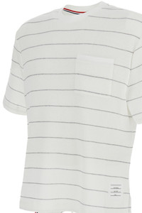Short-sleeve crew neck T-shirt in structured striped cotton. Color: white. Relaxed fit. Chest pocket. Striped grosgrain tab at the back of the neck. Made in Italy. Details and Care Color: Bianco Composition: 74% CO 26% LI Made in: Italia Sku: MJS305AJ0245134
