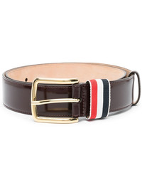 35mm RWB stripe belt Presented in a dark brown hue, this belt from Thom Browne is crafted from smooth calf leather for a classic look. The RWB striped loop adds a signature touch to the accessory. Imported Composition Calf Leather 100%