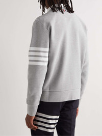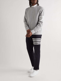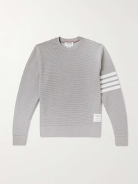 You can never have too many sweatshirts, especially when they're as comfortable and well-made as Thom Browne's. This ribbed style has been made in Italy from soft cotton-jersey and features both signature striping and a logo appliqué. Wear it with the label's tailored trousers. Size & Fit - Size 0 = XS, 1 = S, 2 = M, 3 = L, 4 = XL, 5 = XXL and 6 = XXXL - Fits true to size. Take your normal size - This regular cut sweatshirt is designed for a comfortable fit - Mid-weight, slightly stretchy fabric - Model wears a 2 - Model measures: chest 38"/ 96cm, height 6'2"/ 188cm Details & Care - Grey and white cotton-jersey - 100% cotton - Machine wash - This item has been imported