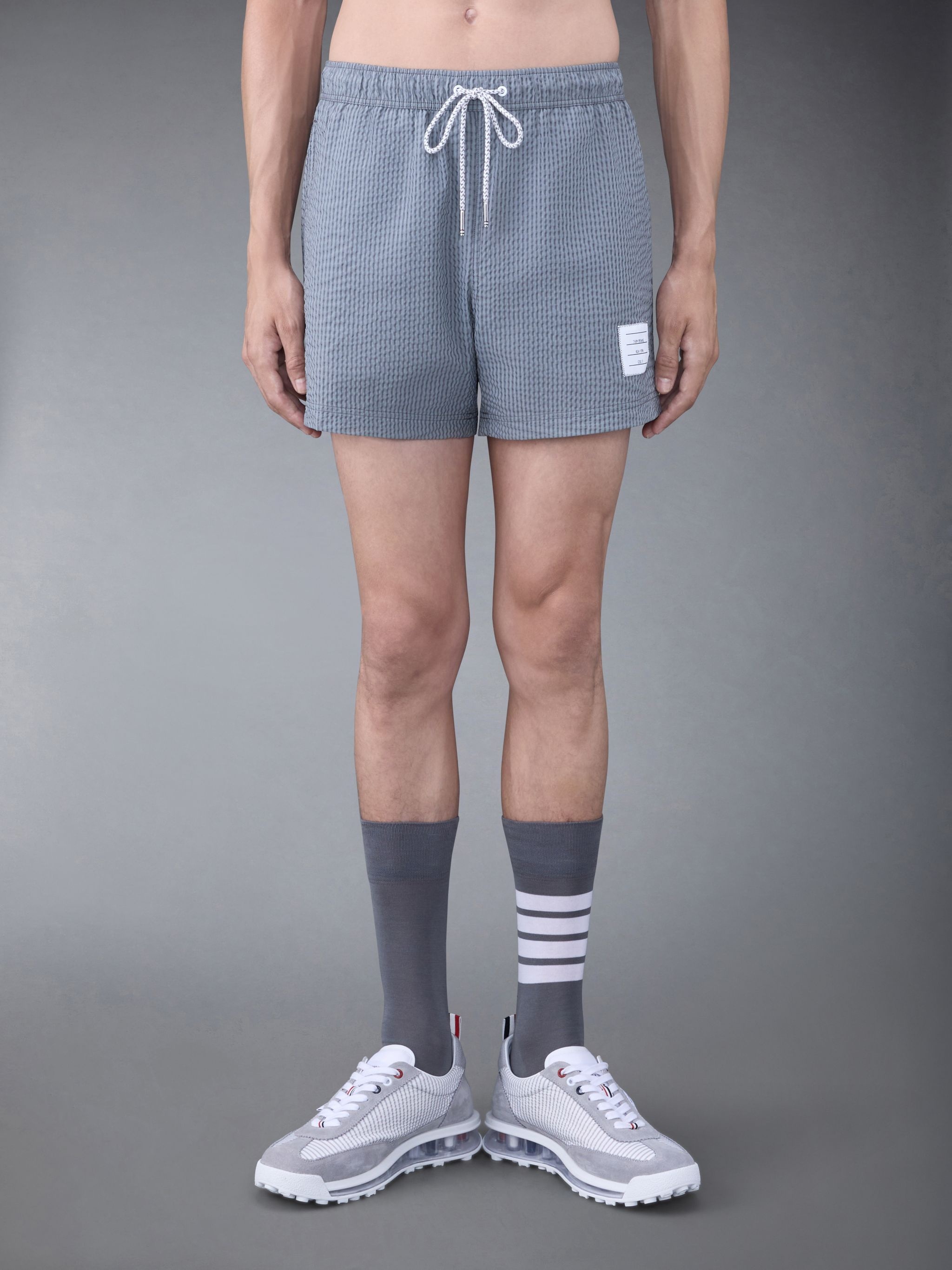 striped seersucker-texture swim shorts