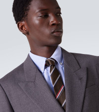 Thom Browne has gained global attention for redefining contemporary tailoring and creating a modern uniform. Crafted in Italy from fine silk, this tie features a classic striped pattern that adds a touch of elegance to your favorite suits. Product Details - Material: 100% silk - Care instructions: dry clean - Made in Italy - Designer color name: Brown - Item color: brown - Item number: P01053989 Size & Fit - Max. width 5,5cm-2"