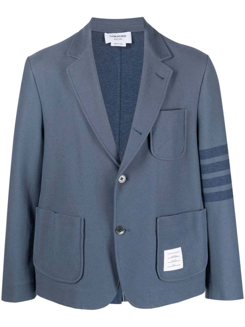 striped-sleeve cotton blazer blue cotton stripe detailing logo patch to the front signature grosgrain loop tab notched lapels front button fastening three front patch pockets long sleeves central rear vent straight hem Made in Italy Composition Outer: Cotton 100% Lining: Cotton 100% SIZE & FIT Model measurements Height 6 ft 1 in(1.85 m) Bust/Chest 35.82 in(91 cm) Hips 37.79 in(96 cm) Waist 29.13 in(74 cm) Measurement CHEST 44.88 in(114 cm) SLEEVE LENGTH 24.4 in(62 cm) LENGTH 27.16 in(69 cm) WAIST 44.09 in(112 cm) Washing instructions Dry Clean Only