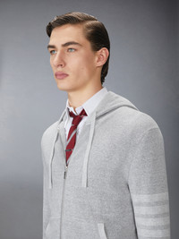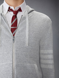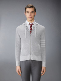 Made with lightweight linen cotton waffle fabric, this breathable hoodie is a classic that will stand the test of time. Front zip closure 4-bar detailing Side slip pockets Drawstring hood Model is 6'1" (185cm), wearing size 1 68% Linen, 32% Cotton Made in Italy MKT019A-Y6011-982 MKT019A-Y6011-982