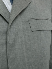 Super 120s Chesterfield overcoat No more casual Fridays at the office. This Super 120s Chesterfield overcoat from Thom Browne will make you want to suit up every day of the week. Show them you mean business. Featuring a front button placket, a notched collar, side flap pockets, a broad welt chest pocket, a double vent to the rear and button cuffs. Made in Italy Composition Wool 100% SIZE & FIT Model measurements Height 6 ft 3 in(1.9 m) Bust/Chest 37.4 in(95 cm) Hips 35.43 in(90 cm) Waist 29.92 in(76 cm) Washing instructions Dry Clean Only