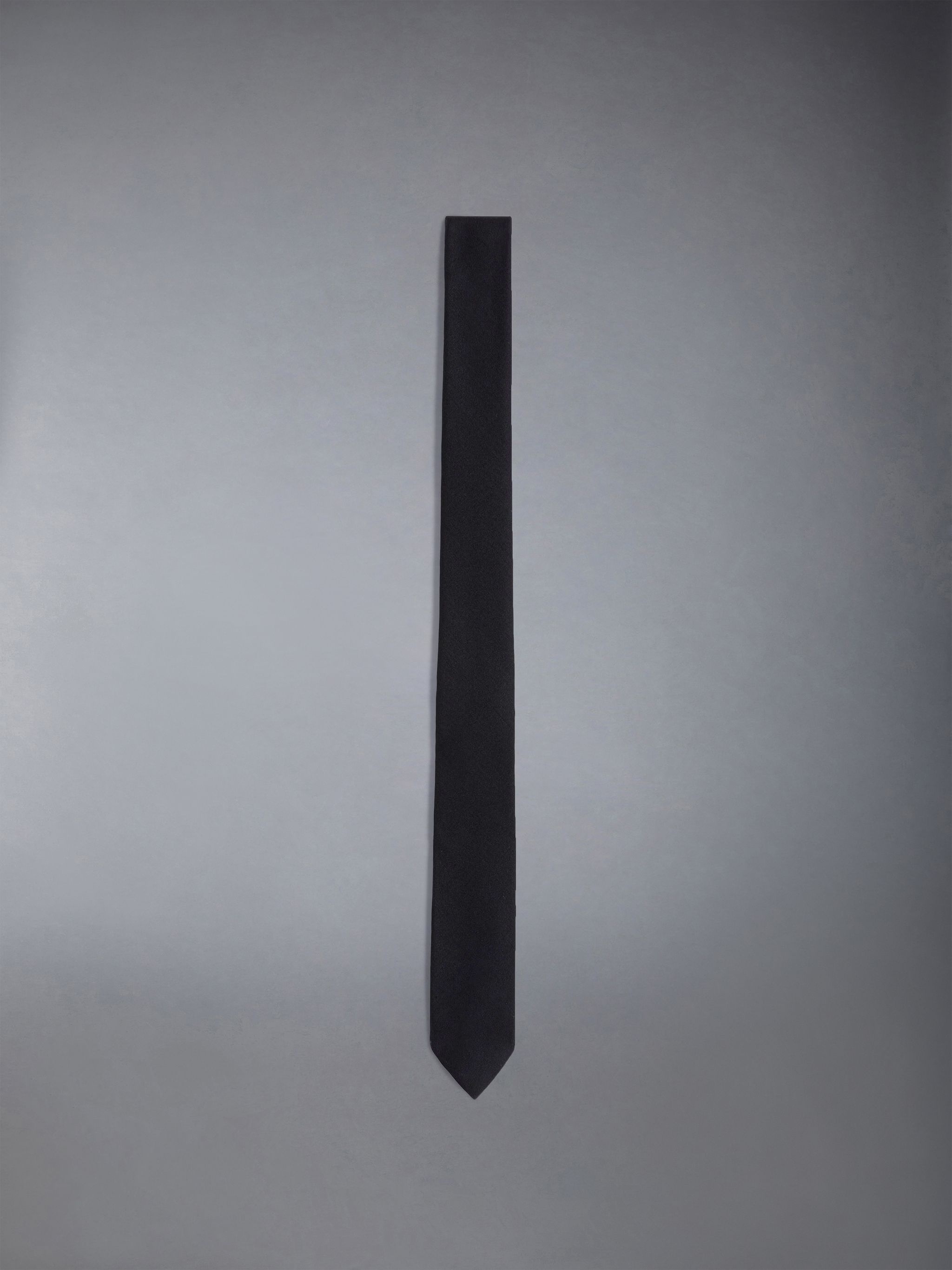 DETAILS & FIT Navy Classic Necktie Keeper Loop Thom Browne 4-Bar Tag Signature Grosgrain Lining NOTES 100% Wool Made in Italy MNL001A00626415