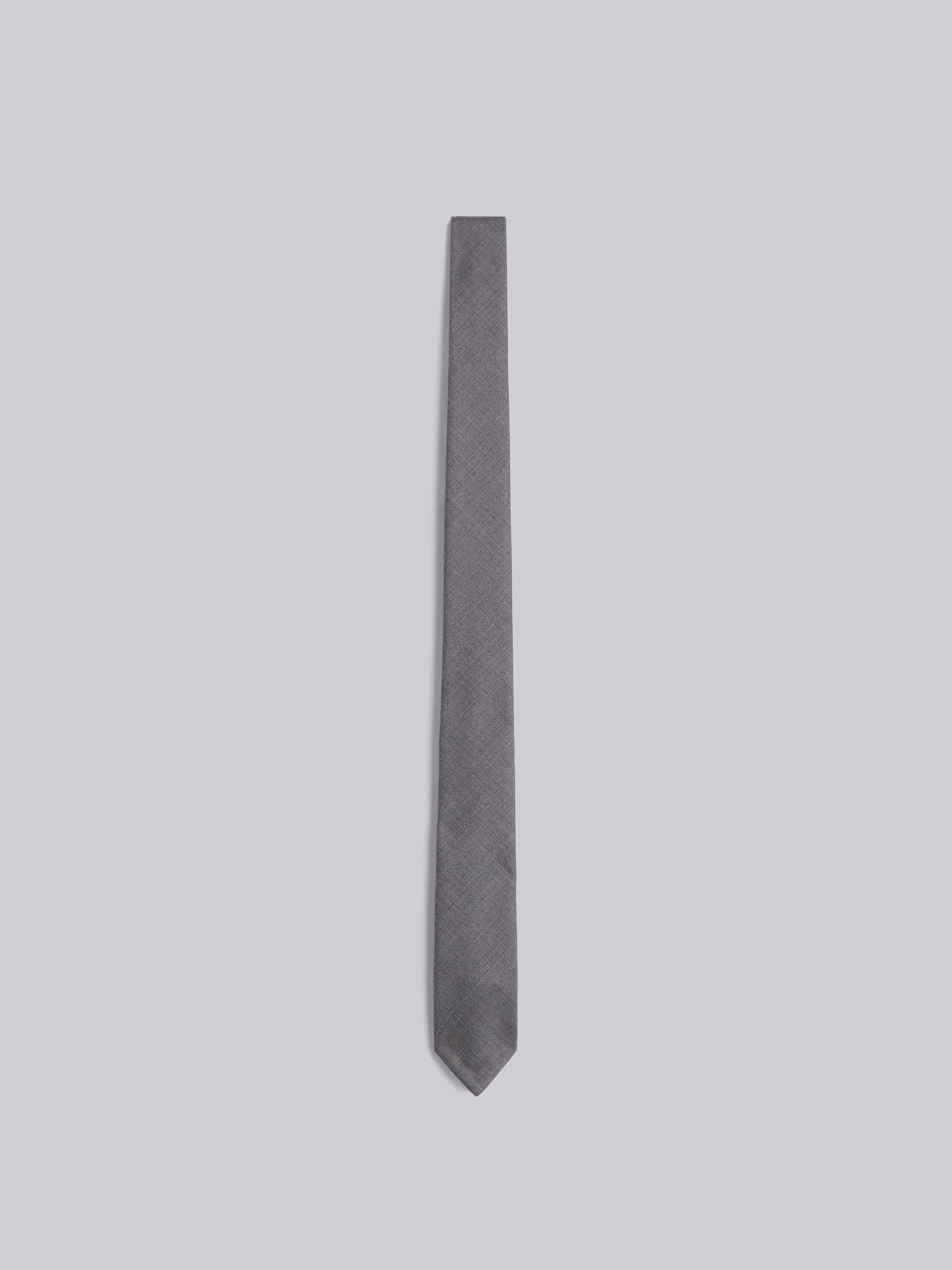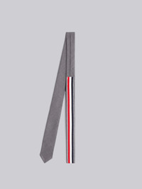 DETAILS & FIT Medium Grey Classic Necktie Keeper Loop Thom Browne 4-Bar Tag Signature Grosgrain Lining NOTES 100% Wool Made in Italy MNL001A00626035