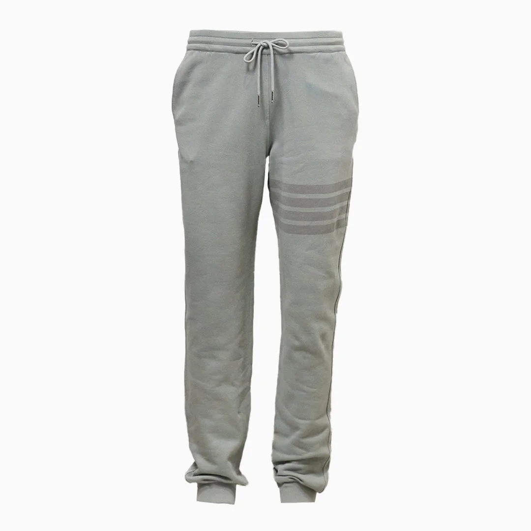 600077596LGY000 / PS26-MJQ243A-J0007/00/055 - Elasticated waistband with grosgrain drawstring - Signature 4-bar stripe detail on left leg - Ribbed cuffs and hem - Overdyed cotton fleece construction - Tailored slim fit - Tonal stitching throughout Thom Browne Sweatpants Overdyed 4 Bar deliver premium loungewear with the brand's signature preppy-athletic aesthetic. Crafted from soft cotton fleece in muted sage green with overdyed finish, featuring the iconic 4-bar stripe detail on the left leg. The tailored fit and signature grosgrain drawstring elevate casual wear with sophisticated New York craftsmanship.