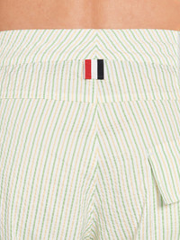 DETAILS & FIT Board short in seersucker swim tech with drawstring waistband. Slip side pockets, single black flap pocket, name tag applique above left cuff. Signature striped grosgrain loop tab at back waist. Model is 6' 1" (185cm), wearing size 0. 42% Polyamid, 30% Elastomultiestere (Polystreatch), 28% Polyester Made in Italy MTT029AF0009350