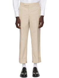 Plain-woven polyester- and cotton-blend trousers. · Four-pocket styling · Button-fly · Creased legs · Grosgrain trim at cuffs · Tricolor grosgrain flag at back waistband · Adjustable button strap at back · Full striped cupro satin lining Supplier color: Khaki Body: 65% polyester, 35% cotton. Lining: 100% cupro. Made in Japan 241381M191007