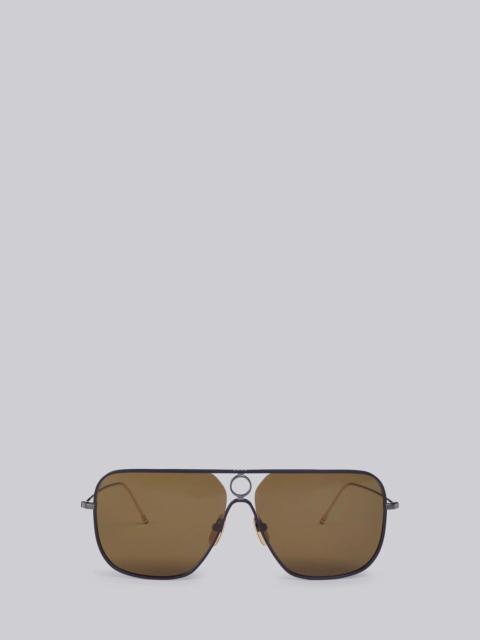 DETAILS & FIT Silver Rectangular Shape Aviator Sunglasses Titanium Front Frame Titanium Brow Bar Titanium Bridge Piece 4-Bar Top of Bridge Laser Line Detail Enamel Front Frame Detail Center Bridge Cigarette Holder 4-Bar Titanium Nose Pads Detail Tri-Color Temple Tips 100% UVA and UVB Protection Anti-Reflective Coating Lens Width: 62 mm Temple Length: 150 mm Nose Bridge Length: 13.5 mm . NOTES 100% Metal TBS114-62-01 Made in Japan - Arm Length: 15.0cm - Bridge Width: 1.3cm - Lens Diameter: 6.2cm - Total Width: 14.8cm