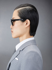 DETAILS & FIT Rectangular sunglasses in black acetate with black tinted lenses. Transparent nose pads, flexible temples with striped tips. Eco-Leather case with signature striped grosgrain loop tab at entry. Lens Width: 48mm Nose Bridge Length: 235mm Temple Length: 147mm 100% Acetate Made in Japan UES412A-G0002-001 - Arm Length: 14.7cm - Bridge Width: 2.3cm - Lens Diameter: 4.8cm - Total Width: 14.5cm