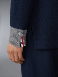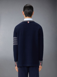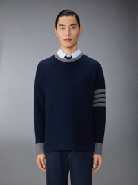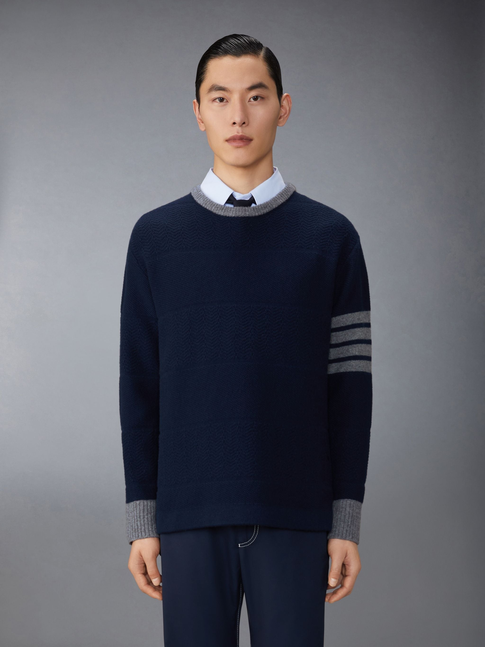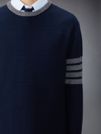 Merino Wool 4-Bar Textured Rugby Stripe Crew Neck Pullover