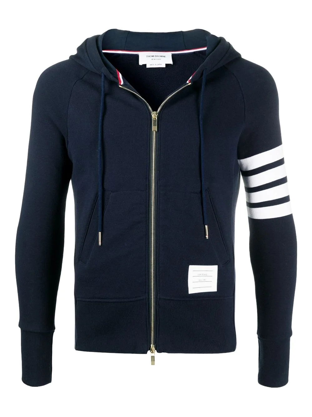 stripe-detailed zip-fastening hoodie Highlights - Blue - Stripe detail - Zip fastening - Drawstring hood - Side pockets - Ribbed cuffs Imported Composition Outer: Cotton 100% Lining: Cotton 100% Washing instructions Read Manufacturer Guidelines