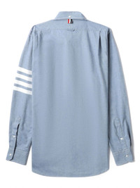 4-Bar button-down shirt An unmistakable symbol of the brand, THOM BROWNE's 4-Bar stripe appears throughout the label's collections. It can be seen in a white hue on the sleeve of this classic light blue shirt. Highlights - Light blue/white - Cotton - Signature 4-bar stripe - Logo patch to the front - Signature grosgrain loop tab - Button-down collar - Long sleeves - Buttoned cuffs - Front button placket - Curved hem Made in Italy Composition Cotton 100% SIZE & FIT Measurement CHEST 40.98 in(104.1 cm) SLEEVE LENGTH 25 in(63.5 cm) LENGTH 30.51 in(77.5 cm) WAIST 40 in(101.6 cm) FittingInformation Designed for a regular fit, allowing for a comfortably loose fit throughout the body Made from a midweight non-stretch fabric Washing instructions Dry Clean Only