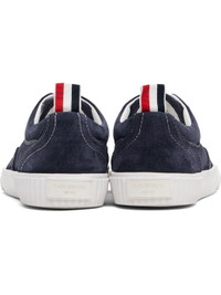 Low-top calfskin suede sneakers. · Lace-up closure · Padded collar · Tricolor grosgrain pull-loop at heel collar · Buffed calfskin lining · Logo patch at heel · Vulcanized rubber sole · Contrast stitching in white Supplier color: Navy Upper: calfskin. Sole: rubber. Made in Spain 252381M237004