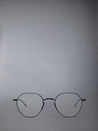 Thin-frame round eyeglasses in matte black titanium. Open titanium nose pads, thin temples with striped enamel tips. Eco-Leather case with signature striped grosgrain loop tab at entry. Lens Width: 48mm Nose Bridge Length: 21mm Temple Length: 140mm 100% Titanium Made in Japan UEO914A-G0001-005