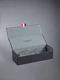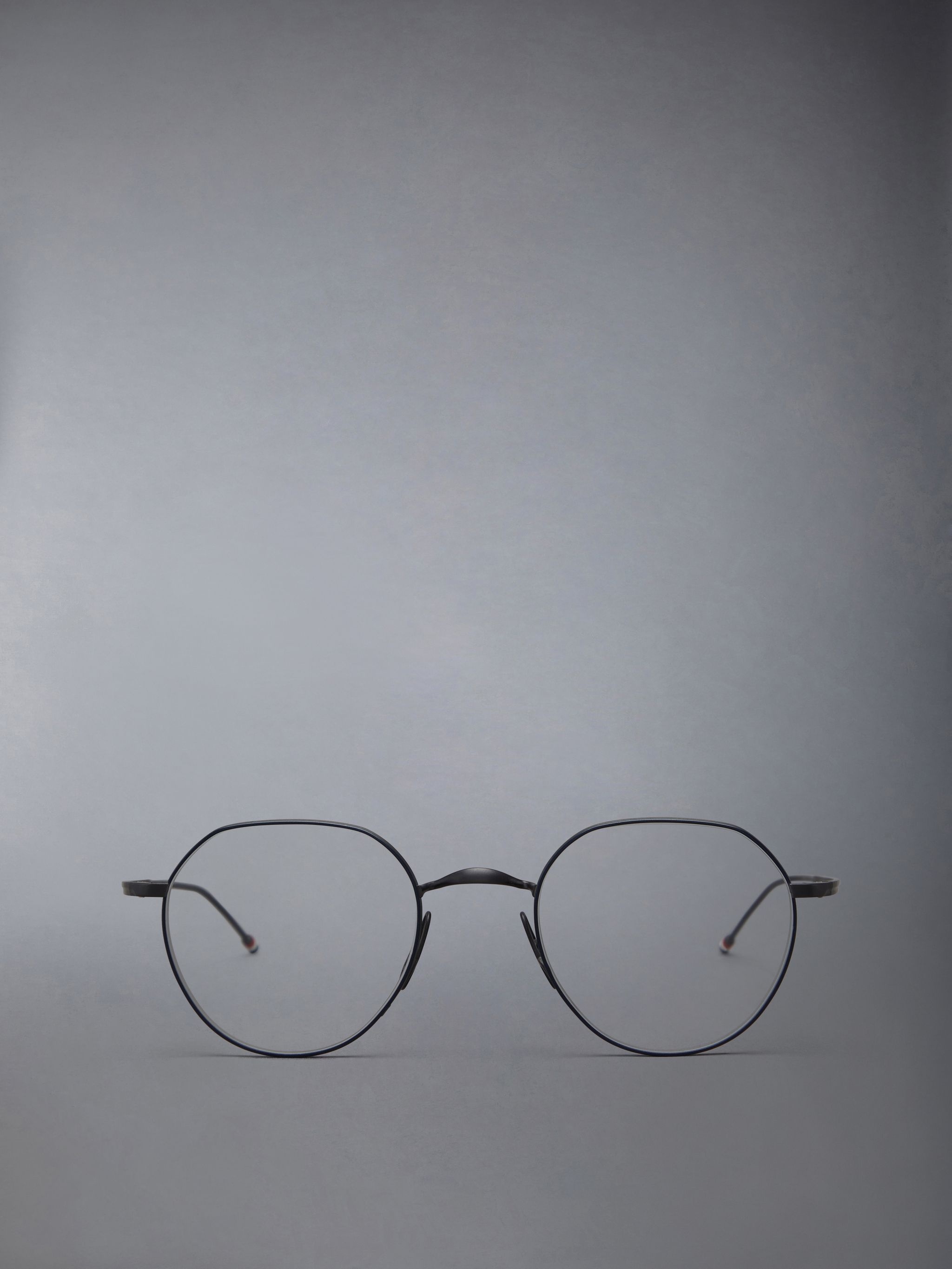 DETAILS & FIT Thin-frame round eyeglasses in matte black titanium. Open titanium nose pads, thin temples with striped enamel tips. Leather case with signature striped grosgrain loop tab at entry. Lens Width: 48mm Nose Bridge Length: 21mm Temple Length: 140mm 100% Titanium Made in Japan UEO914A-G0001-005-48