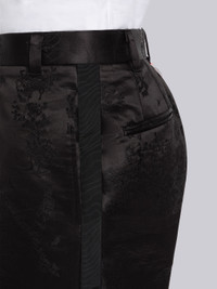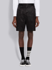 DETAILS & FIT Unconstructed straight leg short in tonal toile silk duchess jacquard with double welt pockets. Tab closure, flat front, slant side pockets, back welt pockets. Allover tonal grosgrain tipping. Signature striped grosgrain loop tab at back waist. Model is 6' 1" (185cm), wearing size .0 67% Polyester, 33% Silk Made in Japan MTU313BF0048001
