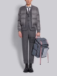 DETAILS & FIT Our Wool Flannel 4-Bar Classic Trouser will keep you both warm and styliish. The classic shortened hem pays homage to Thom Browne's distinguished tailoring. Tab front closure Adjustable buttoned backstrap Engineered 4-bar stripe detail Slip side pockets Button-fastening jetted hip pockets Signature striped grosgrain loop tab at back waist Model is 6' 1" (185 cm), wearing size 0 95% Wool, 5% Cashmere Lining: 100% Cupro Made in Italy MTC001A-06393-035
