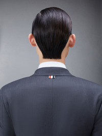 Our Twill High Armhole Suit and Tie embraces a slimmer fit taken from punk influences while remaining true to Thom Browne classic heritage. Since its introduction, the slim-fit suit has maintained its loyal devotees. Front button closure Notched lapels 3 flap front pockets, single chest pocket Buttoned cuffs with signature striped grosgrain trim Double back vent Striped sport coat lining with interior pocket and name tag Tab trouser closure Adjustable buttoned side tabs Slip side pockets, Button-fastening jetted hip pockets Creased legs Narrow cuffs Signature striped grosgrain loop tab at back of neck and waist Classic slim tie High Armhole and Low Rise - Fit 3 Model is 6' 1" (185cm), wearing size 0 100% Wool Lining: 100% Cupro Made in Italy MSC159A-00626-025