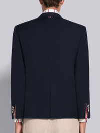 DETAILS & FIT Single breasted sport coat in navy typewriter cloth with grosgrain-trimmed button placket. 2-button front closure, notched lapels, 3 flap front pockets, single chest pocket. Buttoned cuffs with signature striped grosgrain trim. Striped lining with interior pocket and name tag. Signature striped grosgrain loop tab at back of neck. Model is 6' 1" (185cm), wearing size 0. 65% Polyester, 35% Cotton Made in Japan MJC328E04502415