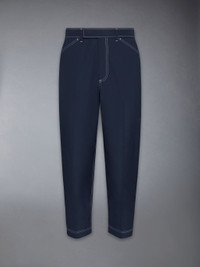 DETAILS & FIT Our Typewriter Cloth Tapered Chino. A classic shortened hem pays homage to Thom Browne’s distinguished tailoring. Tab front closure Button-fastening back welt pockets Signature striped grosgrain loop tab Model is 6'1" (185cm), wearing size 1 65% Polyester, 35% Cotton Made in Italy MTU334S-04502-415