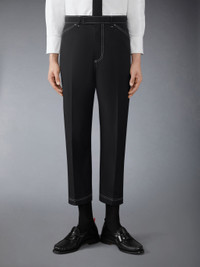DETAILS & FIT Our Typewriter Cloth Tapered Chino. A classic shortened hem pays homage to Thom Browne’s distinguished tailoring. Tab front closure Button-fastening back welt pockets Signature striped grosgrain loop tab Model is 6'1" (185cm), wearing size 1 65% Polyester, 35% Cotton Made in Italy MTU334S-04502-001