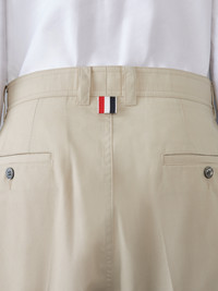 DETAILS & FIT Impeccable craftsmanship, fine fabric, and distinctive Thom Browne emblems make these dress shorts an essential garment for your seasonal wardrobe. Pair them with any of our oxford shirts or casual tees. Tab front closure Button-fastening back welt pockets Signature striped grosgrain loop tab Model is 6'1" (185cm), wearing size 1 65% Polyester, 35% Cotton Made in Italy MTU338S-04502-250