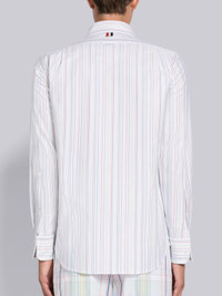 DETAILS & FIT Straight fit shirt in university stripe Oxford. Front button closure, point collar, patch chest pocket, name tag applique above hem. Pleated buttoned cuffs. Pleated back yoke with locker loop. Signature striped grosgrain loop tab at back of neck. Model is 6' 1" (185cm), wearing size 1. 100% Cotton Made in Italy MWL272AF0272996