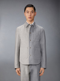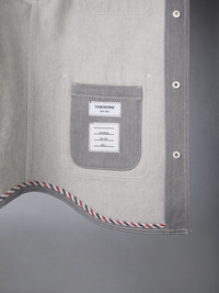 DETAILS & FIT A weighted denim layer in classic grey, perfect for transitional dressing after the summer season. Pair it with our Washed Denim Contrast Topstitching Unconstructed Straight Leg Trousers. Front button closure 4 Front patch pockets Snap button cuffs Signature striped grosgrain loop tab Model is 6' 1" (185cm), wearing size 0 100% Cotton Lining: 100% Cupro Made in ITALY MJO230U-03028-035